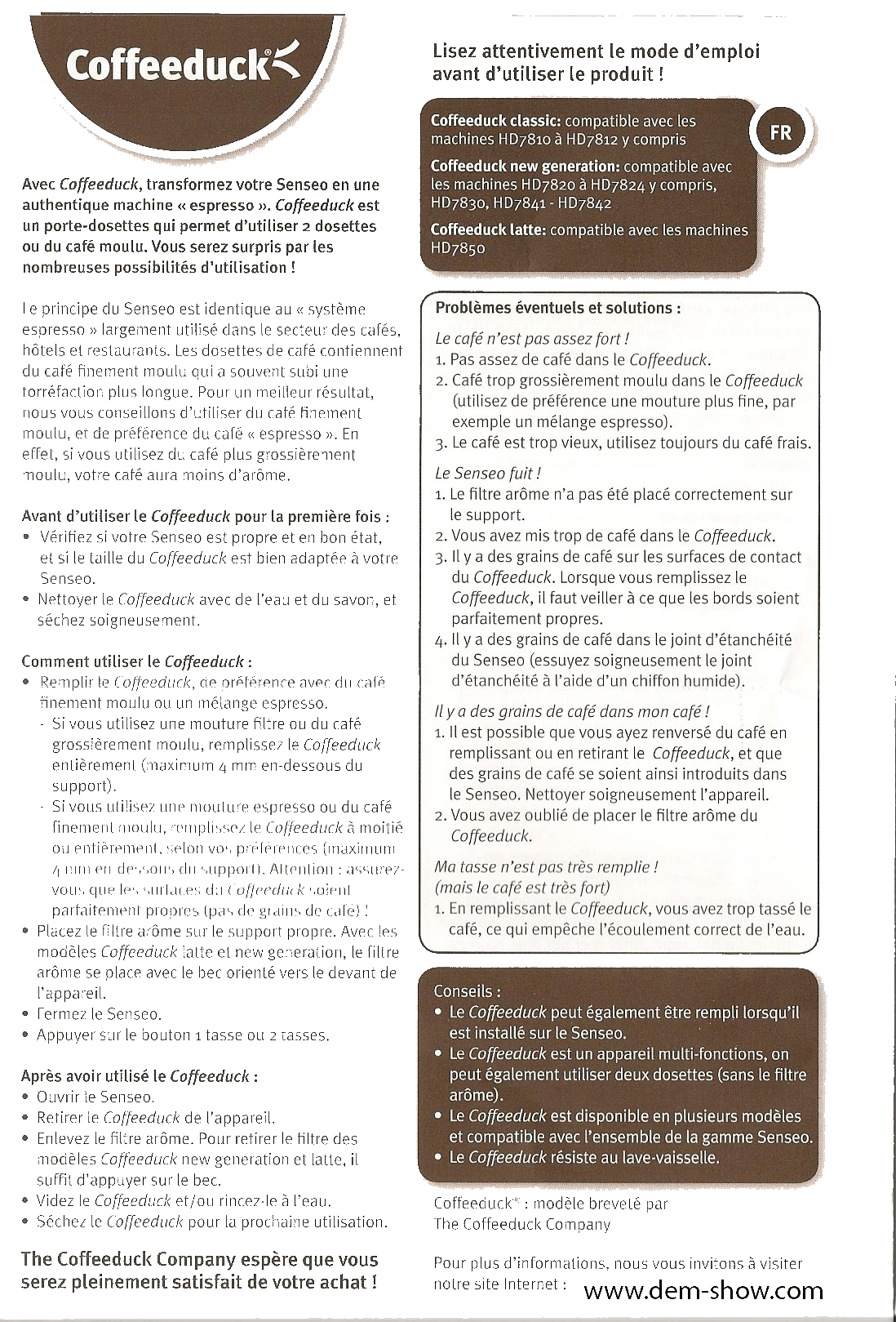 coffeeduck est satisfait ou remboursé, coffeduck est garanti 1 an,coffeeduck la solution pour vos machines à café Senseo et Nespresso...Explications et video